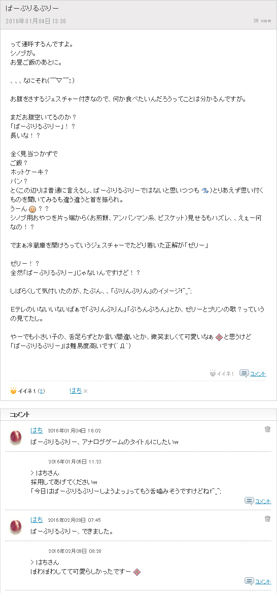 「ぱーぷりるぷりー」の意味? を載せました。https://t.co/4SpXLhj2jR— はち@9/17信州ボドゲフリマ (@putsbee) 2016年9月13日